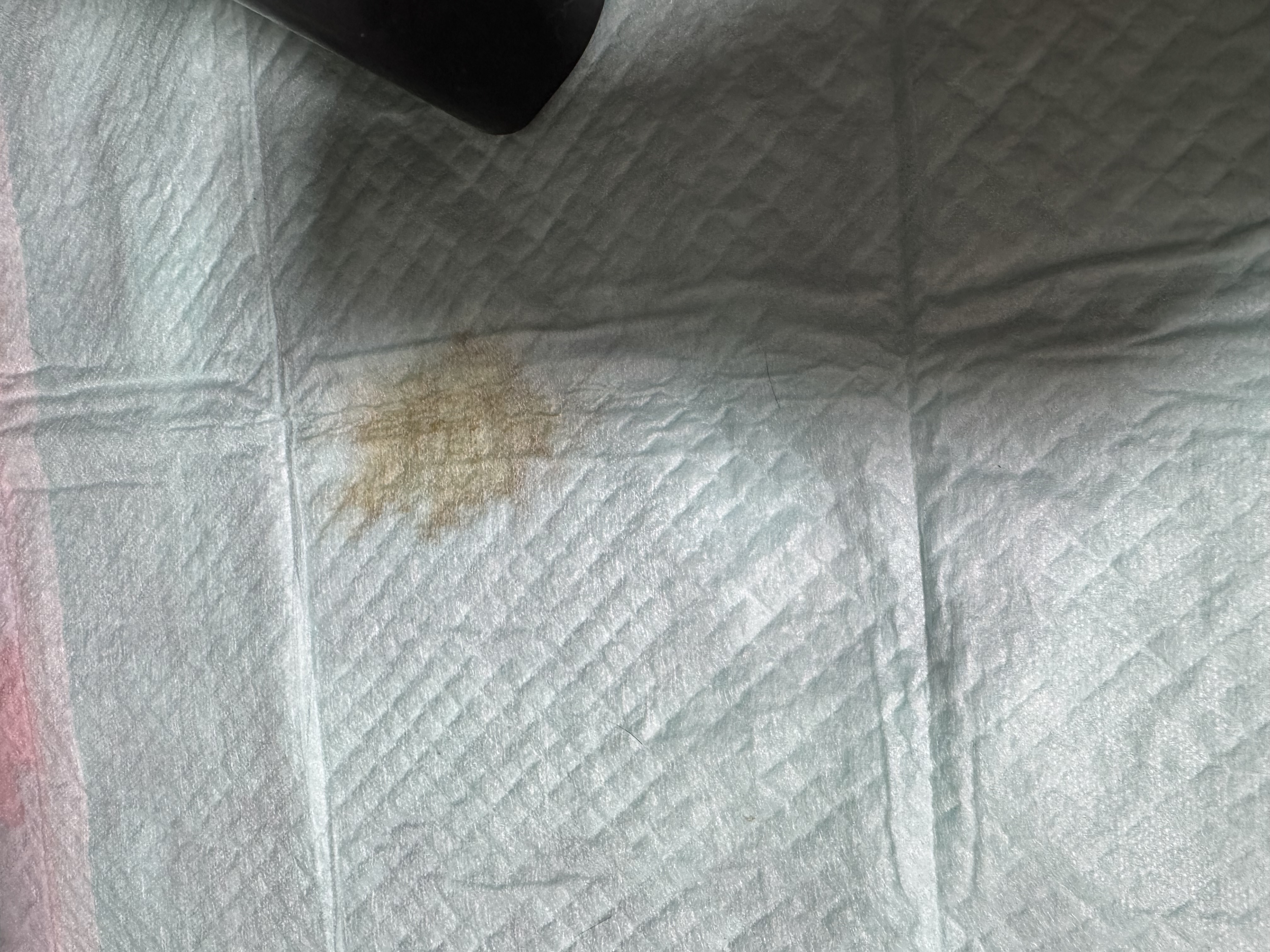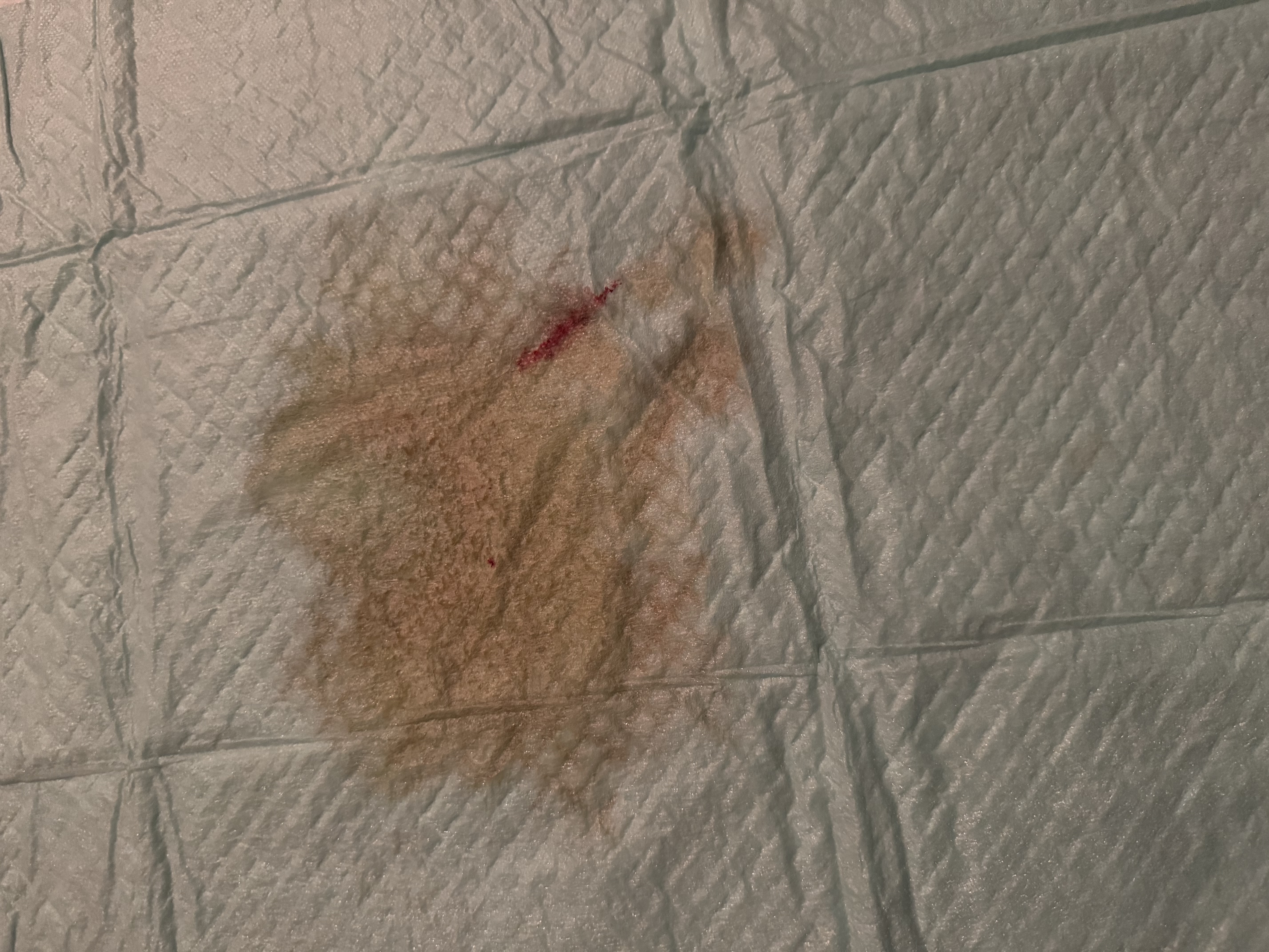 夜に1回、この様に血が混ざったおしっこをし、その後も2枚目の血が混ざったおしっこをし、その後少ししたおしっこはいつも通りの正常なおしっこでした。