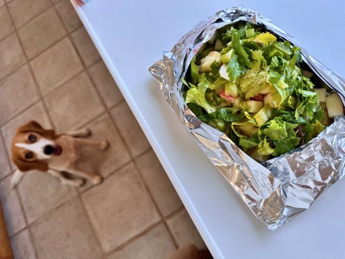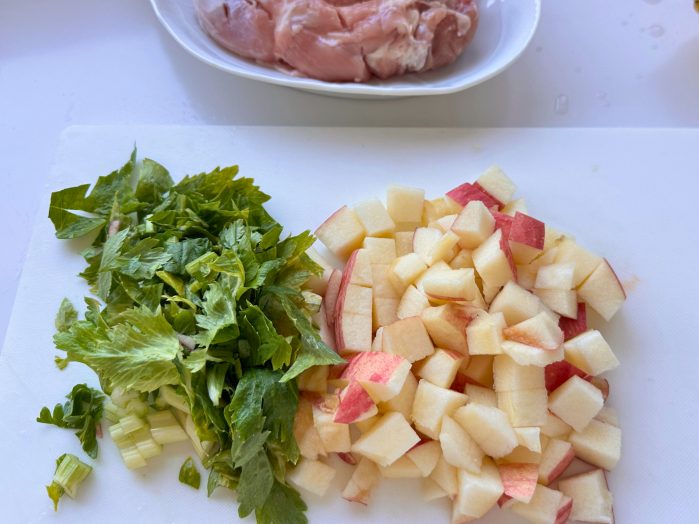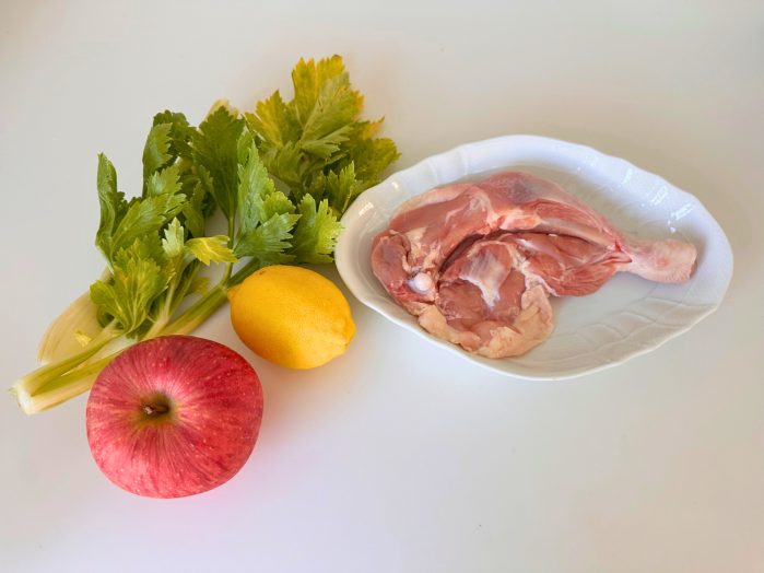 りんごの皮にはポリフェノールも含まれているので、チキンの脂の劣化臭も抑えてくれます。