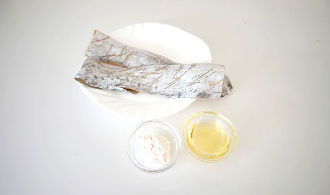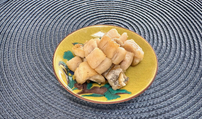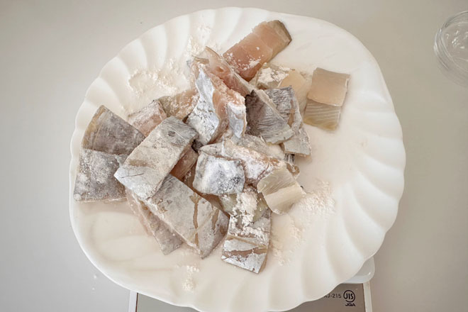 1.タチウオを1.5cmくらいの幅に切って、全体に薄力粉をまぶす。