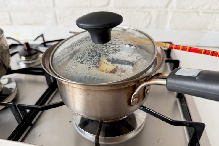 3.沸騰したら弱火にし、加熱している間は菜箸などで蓋を浮かせて蒸気が逃げられるようにする。