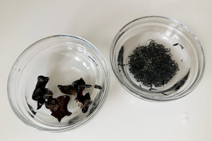 1.ひじき、キクラゲはたっぷりの水で柔らかくなるまで戻しておく。