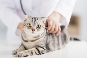 female veterinarian medical doctor with cat