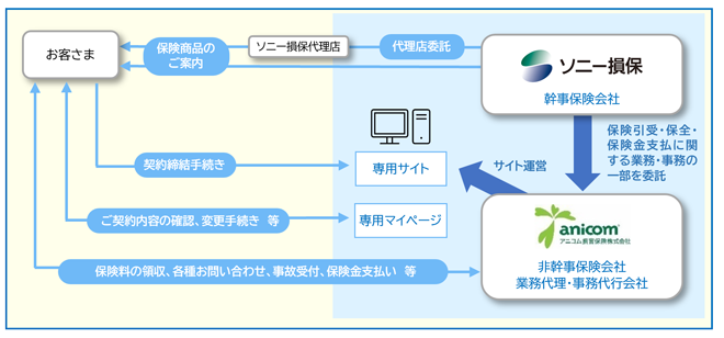 本商品は、ソニー損保が幹事保険会社、アニコム損保が非幹事保険会社となる共同保険商品です。ソニー損保がお客さまに保険商品のご案内を行います。また、契約の保全、保険金のお支払い等に関する業務・事務は、アニコム損保が業務代理・事務代行会社として行います。